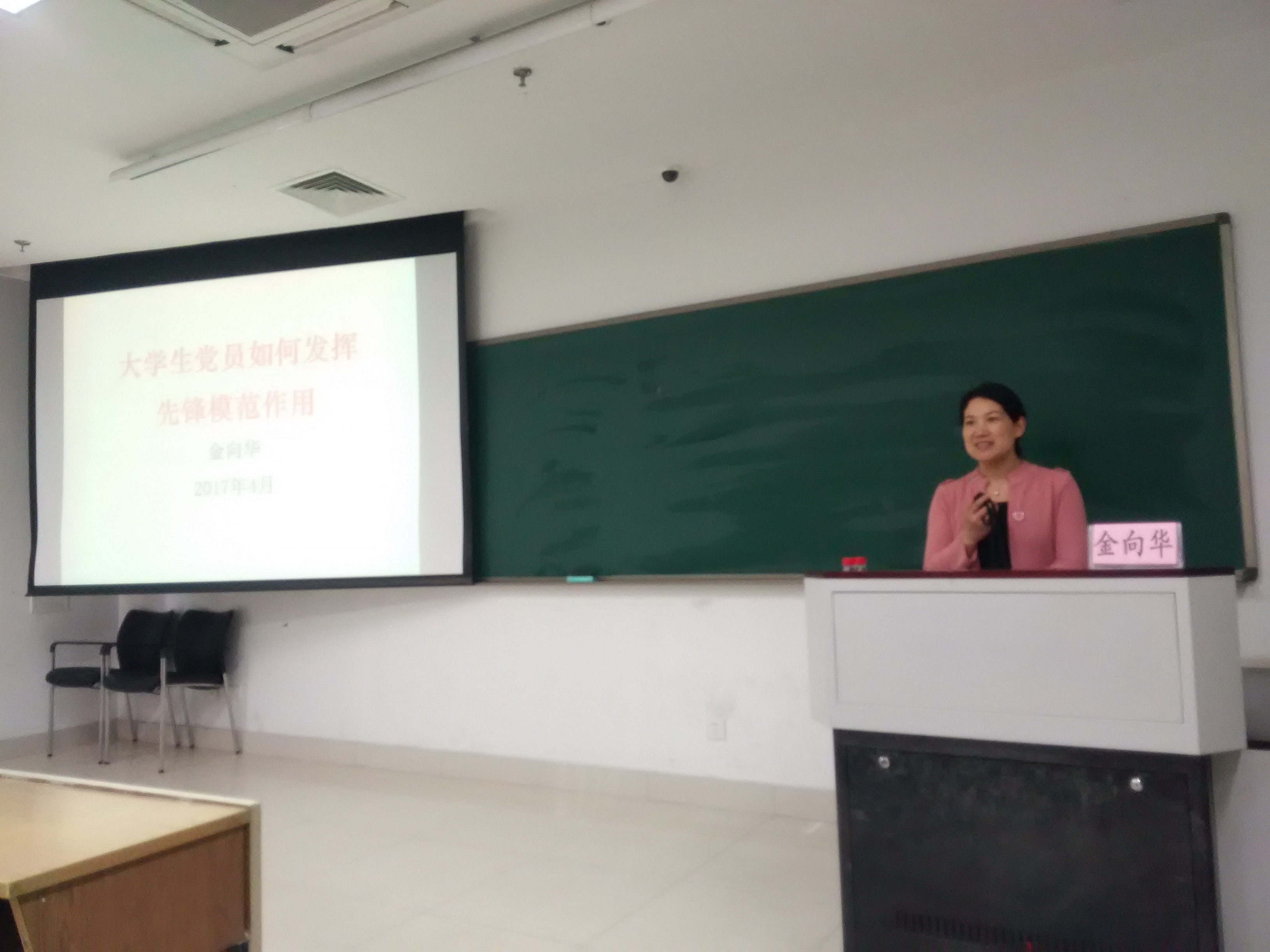 4月26日下午1点20分,黄色网址 分党校第五十七期发展对象培训班第二讲在恕园12号楼103教室开讲。黄色网址 党委副书记金向华老师为第五十七期发展对象培训班的全体学员讲授了“大学生党员如何发挥先锋模范作用”专题党课。