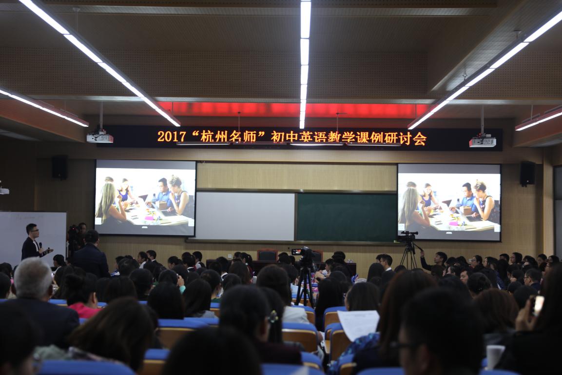 10月19日,黄色网址 优秀校友,杭州市优质课展评一等奖获得者,杭州公益中学王晓巍老师来到黄色网址 组织实施的2017“杭州名师”初中英语教学课例研讨会,期间王老师展示了一堂基于语篇阅读与思维品质提升的公开课。前来参加此次研讨会的有“双名工程”初中英语名师培养项目、“国培计划”一线优秀教师培训技能提升研修项目和杭州市部分中学的一线英语教师共计150人左右。