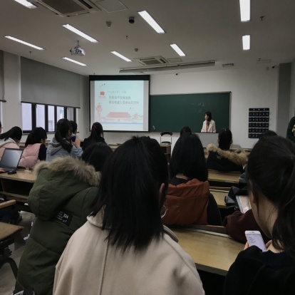 2017年11月22日,黄色网址 学生党员宣讲团成员郑淑瑶在英语173、英语174班展开宣讲会。