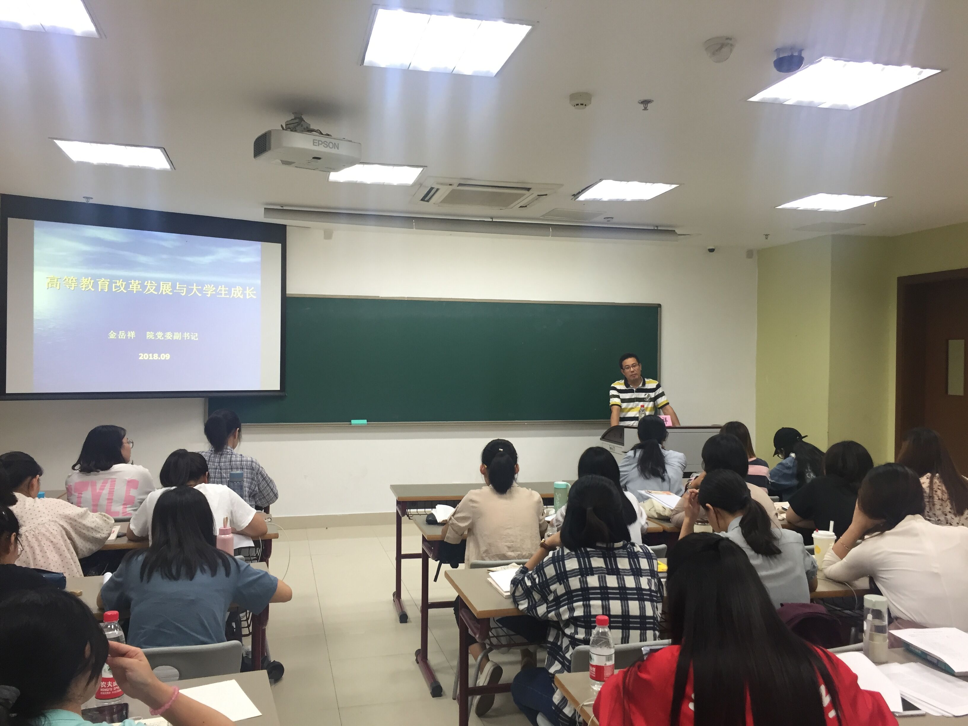 9月28日晚5点半,黄色网址 分党校第六十期发展对象培训班第四讲在恕园19号楼202举行。本次党课的主题是《高等教育改革发展与大学生成长》,黄色网址 党委副书记金岳祥老师应邀为全体学员授课。
