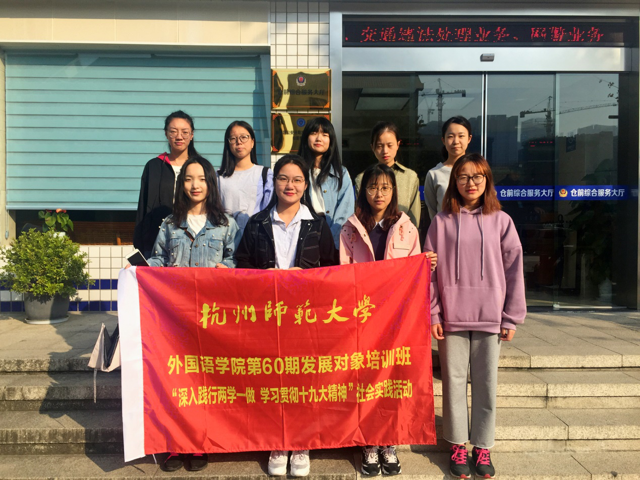 本期培训班社会实践分为两项内容。第一个社会实践活动是“摆放共享单车 维护城市形象”。此次活动让学员们在实践中增强了主人翁意识,践行了党的根本宗旨,发扬了为人民服务的奉献精神。第二个社会实践活动是赴党员志愿服务基地仓前派出所开展志愿者活动。通过协助派出所工作人员帮助市民和外籍人员办理出入境手续,学员们学习了解了此方面的业务,体验到了助人和志愿的快乐,也锻炼了协调和人际交往能力。