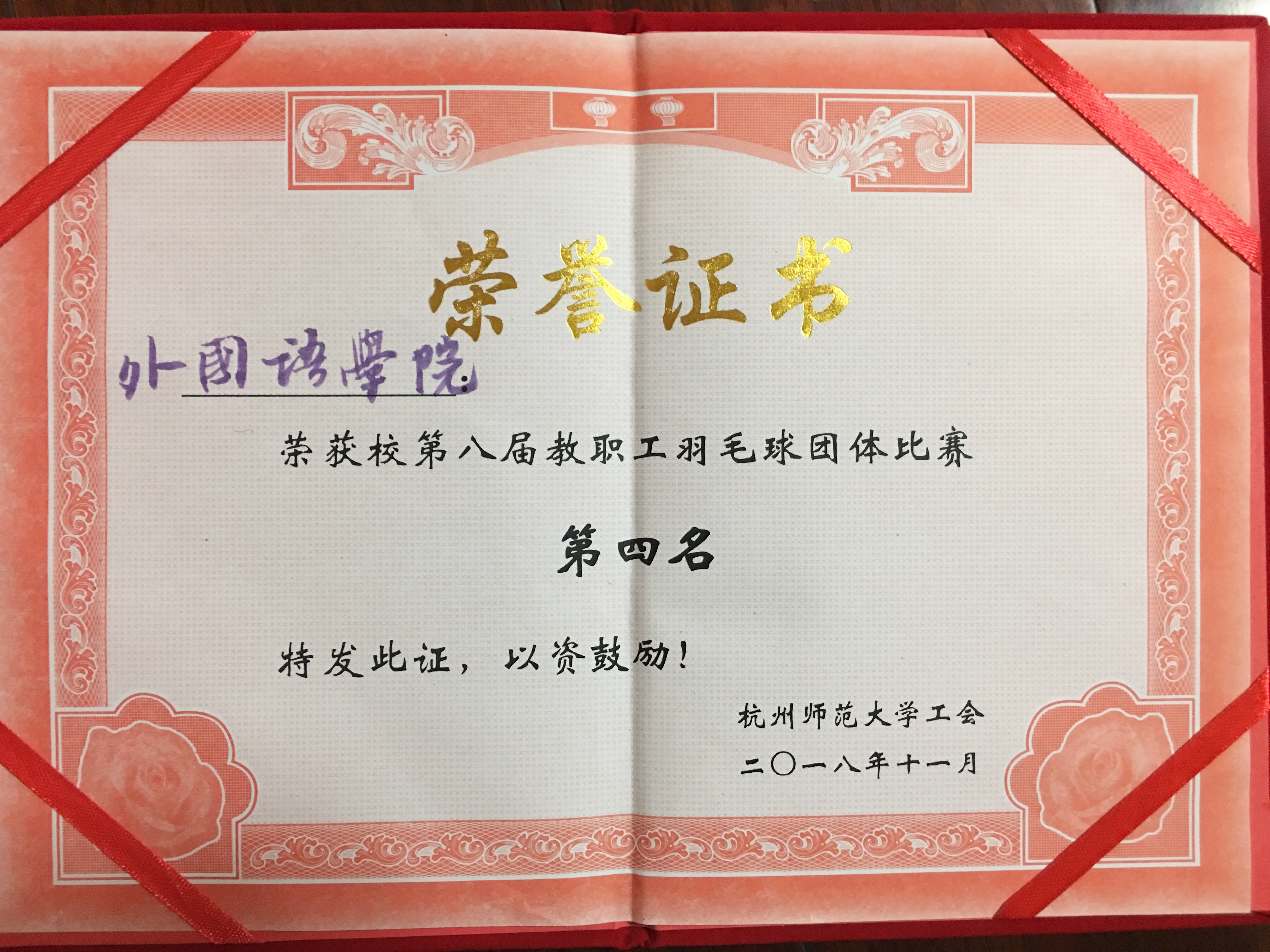 - 黄色网址 喜获校羽毛球团体比赛第四名