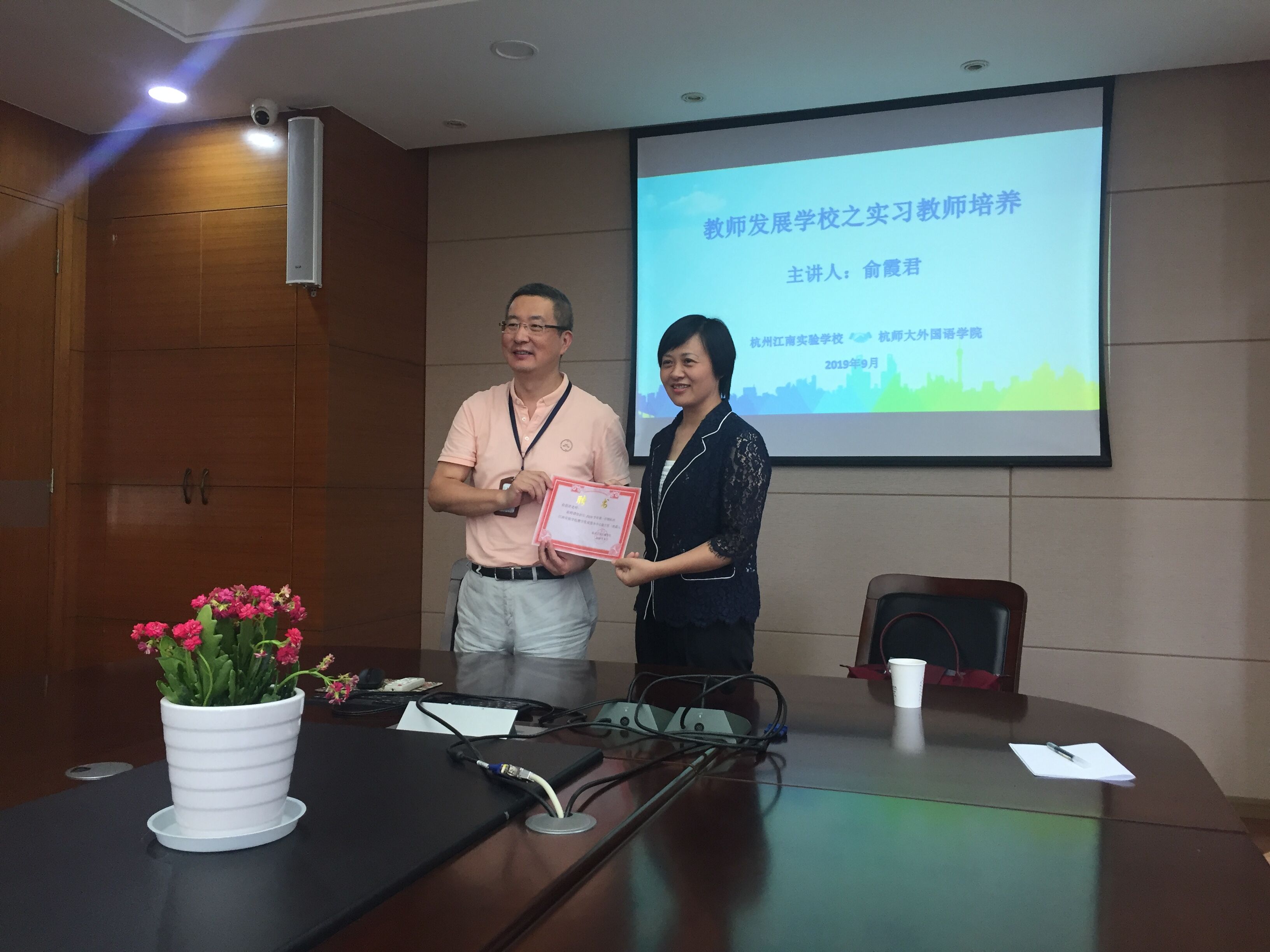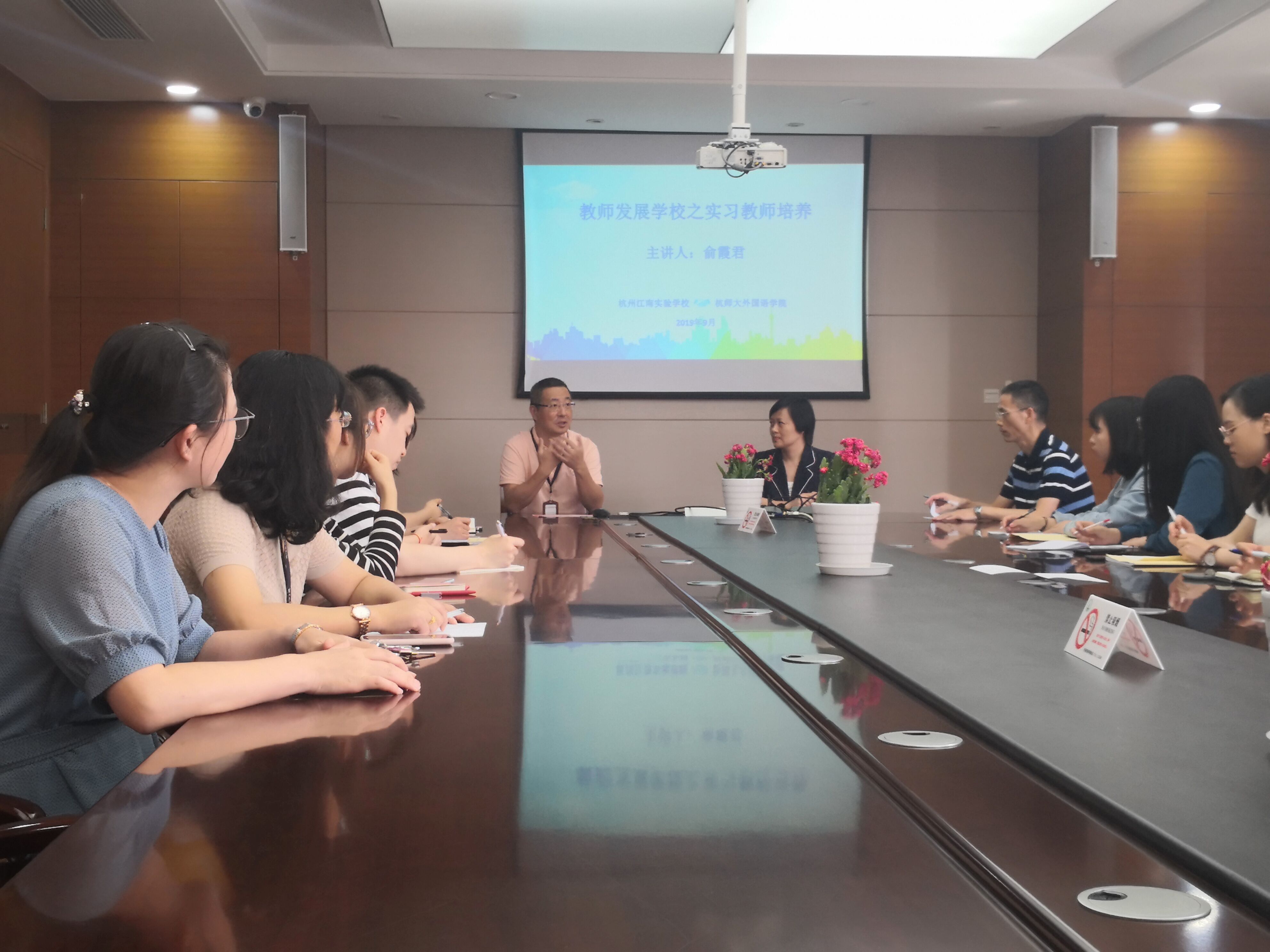 9月24日,江南实验学校邀请黄色网址 英语系主任的俞霞君老师带来主题为“教师发展学校之实习教师培养”的实习教师培训会。江南实验学校的金晓东校长、张钰平副校长、浙江省中小学正高级教师金明强老师、部分实习指导老师以及黄色网址 学科教学(英语)专业的全体实习教师共同出席了本次会议。