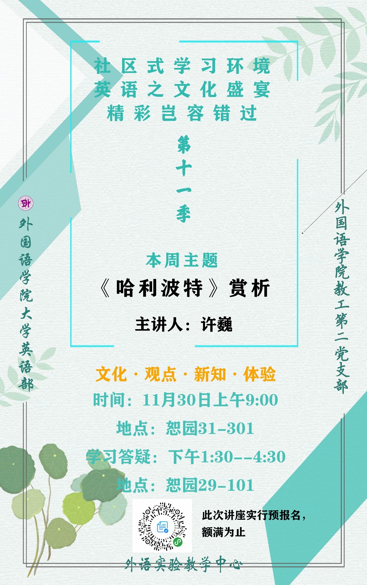 教工第二党支部举办“《哈利波特》赏析”周末英语学习讲座