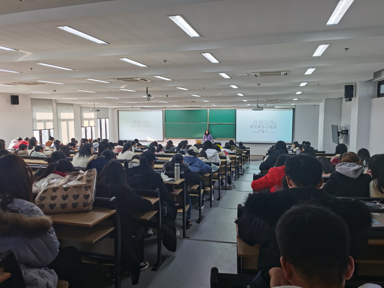2019年12月7日上午九点,一如往常每个周六,每周一次的英语文化沙龙系列讲座又如期而至,总共可以容纳256人的恕园31幢301报告厅内座无虚席。本次讲座由大外部的党员卢已均老师主讲,讲座主题是“让写作赏心悦目”。卢老师通过对英语写作的结构,主题句写法,如何提高逻辑性,语言的润色等几方面进行讲解,并辅以丰富的实例操作,帮助学生明白了英语写作和中文写作的不同之处,同时,卢老师还指出,写作的最终目的是为了让读者赏心悦目,即能充分理解作者的写作意图,又能通过阅读,获得视觉美感和心灵共鸣。通过讲座的聆听,学生纷纷表示对下周即将到来的英语四级考试又增添了几分信心,特别是写作方面。