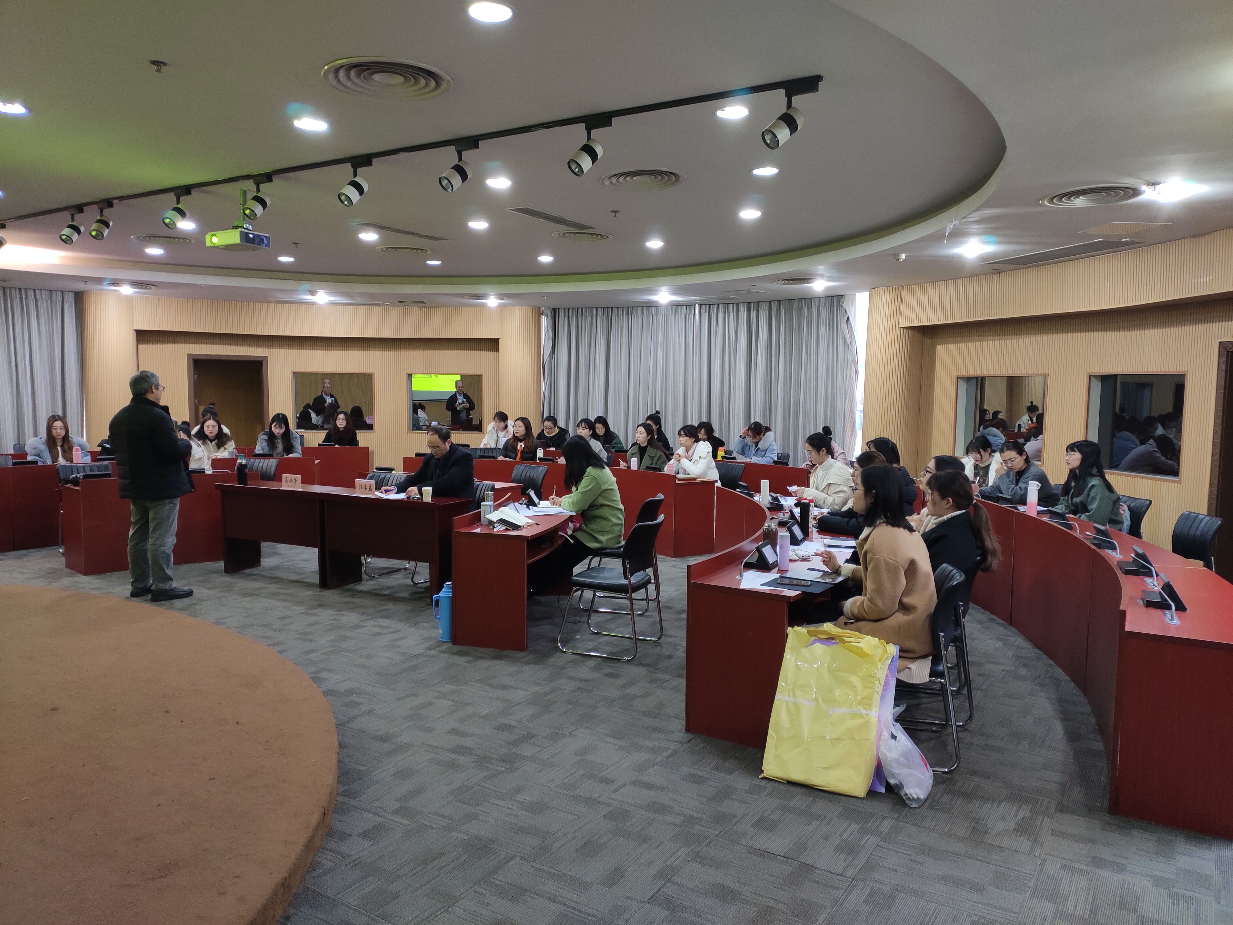 2019年12月6日上午,在恕园25-106会议室,浙江省教研室英语教研员、特技教师葛炳芳老师应邀在黄色网址 开展“英语阅读课堂教学工作坊”的讲座。汪学磊副院长、李中华老师和全体19级学科英语的研究生参加了讲座。