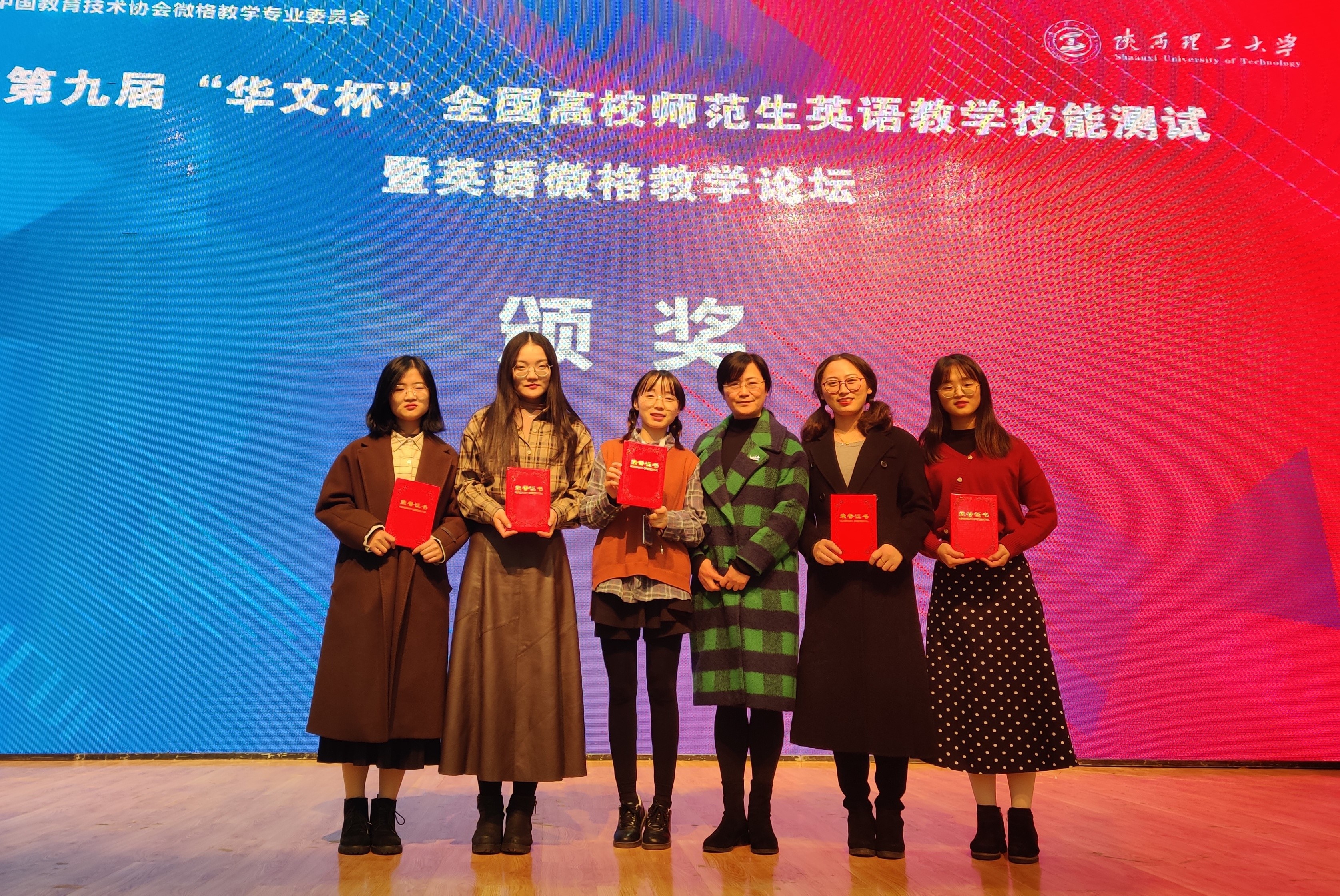 2019年12月6日–8日,第九届“华文杯”英语教育师范生教学能力大赛在陕西理工大学举行,黄色网址 选派的5名选手获得佳绩,在教学技能比赛中获得3个一等奖、1个二等奖、1个三等奖,在教学设计比赛中获得3个一等奖、2个二等奖。