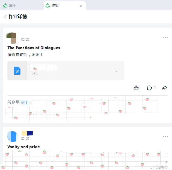 殷企平老师课上的作业圈、师生互动