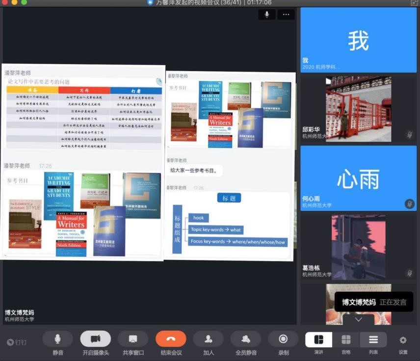 本次的活动圆满结束,同学们通过这次的膏兰论学会议收获颇丰,一方面是从汇报者的讲述中了解了不同的理论,并从中看到了大量的教学案例,拓展了学科领域方面的知识;另一方面从老师的点评中发现我们在做研究中还有哪些不足,从哪个方向去改进。在最后老师还给同学们分享了一些拓展阅读的书籍,帮助同学们在学术的道路上越走越远!这个假期,虽然疫情阻挡了我们在教室上的交流,却无法冷却我们研究学术的热情!