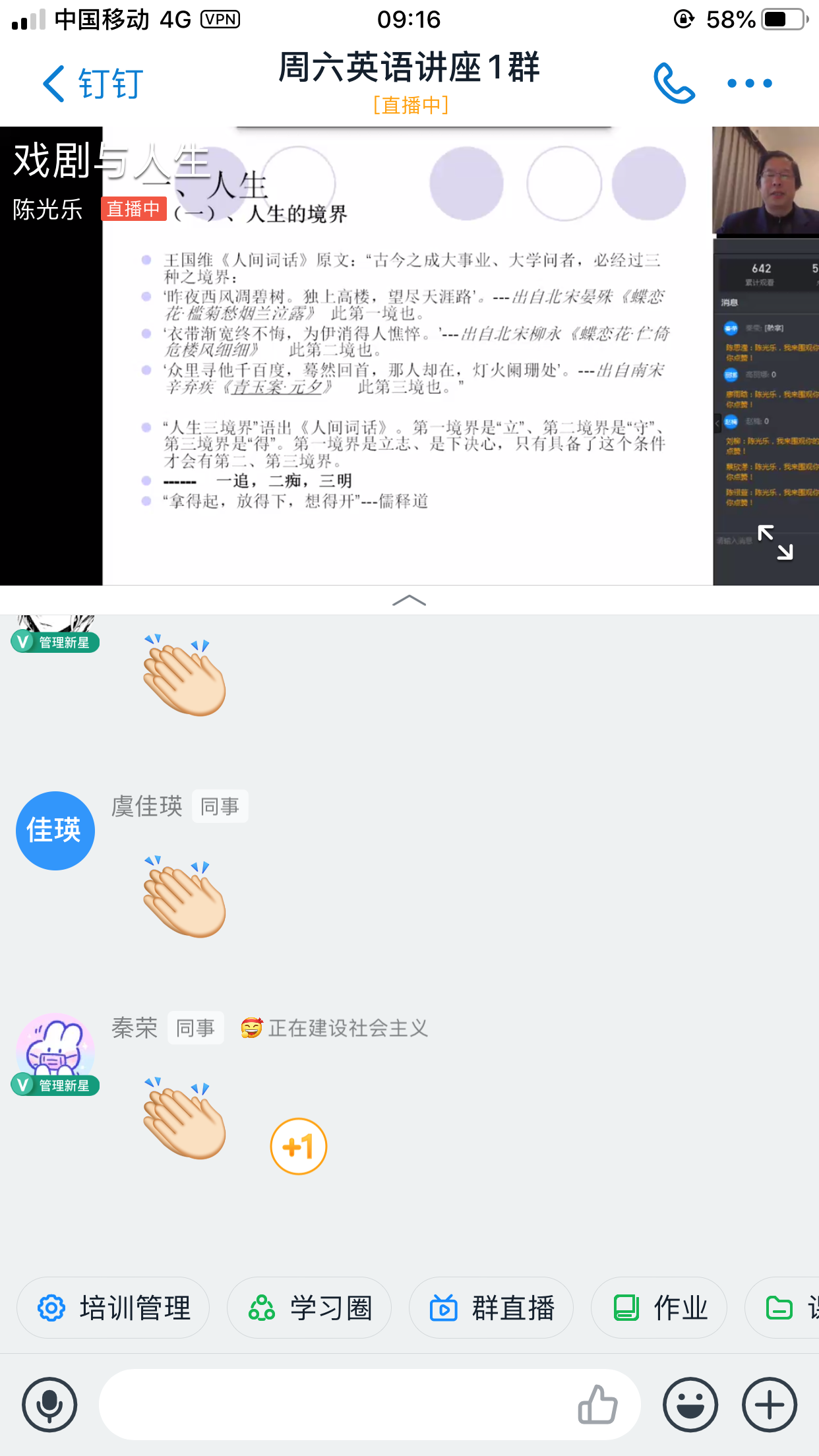 讲座长达两个多小时,但同学们听得都很认真,并积极与老师进行互动。本次讲座以线上多群联播方式进行,老师直播过程中,通过诗词、歌曲、戏剧独白等艺术形式一一展示戏剧的魅力,学生看得如痴如醉,不断通过“弹幕”向老师表达自己的仰慕之情。讲座结束后,学生似乎还依依不舍,满屏的“老师再见”,足见此次讲座的受欢迎程度。随着周六讲座在学生中的口口相传,加入讲座群的学生人数已达到1753人,由于部分学生时间冲突,本次讲座实际参与人数为1363位,继续研修1000+的人气,学生来源主要为2019级非英语专业的学生,同时,也吸引了部分英语专业及浙江黄色网址 的学生来参加学习,观看直播的总人次达到2000多次。
