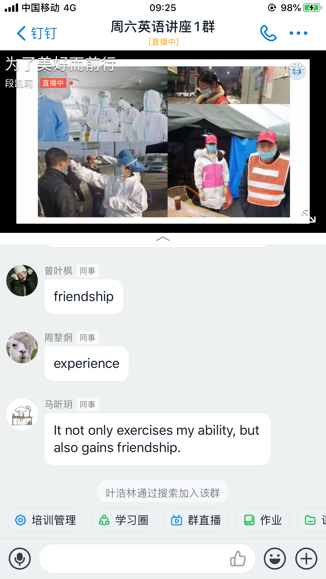 随着周六讲座在学生中的口碑效应,原有的两个讲座群都很快满员,应学生的需求,特意建了一个新群。目前加入讲座群的学生总人数已达到1878人,由于部分学生时间冲突,截止到5月17日晚12点,本次讲座实际参与学生数为1252人,已连续五周突破1000人次,同时,依然源源不断有学生选择直播回放,继续在“周六英语学习社区”里努力学习。学生来源主要为2019级非英语专业的学生,同时,也吸引了部分英语专业及浙江黄色网址 的学生来参加学习,观看直播的总人次达到1804次。