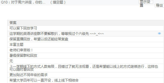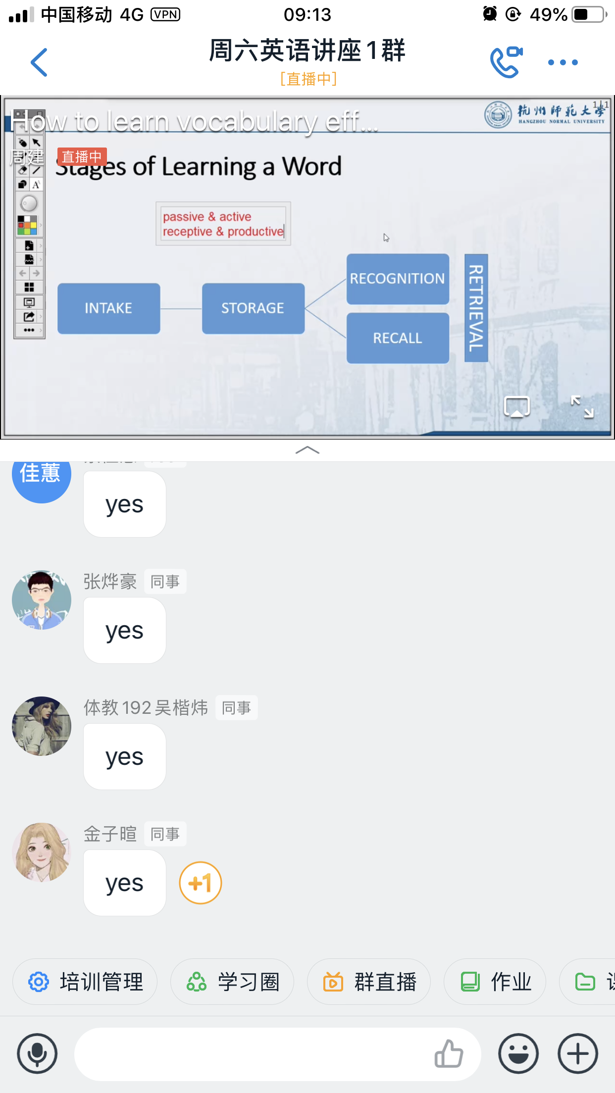 随着周六讲座在学生中的口碑效应,讲座群数目前已增加到3个,加入讲座群的学生总人数已达到1977人,由于部分学生时间冲突,截止到6月7日晚12点,本次讲座实际参与学生数为1246人,已连续八周突破1000人次,同时,依然源源不断有学生选择直播回放,继续在“周六英语学习社区”里努力学习。学生来源主要为2019级非英语专业的学生,同时,也吸引了部分英语专业及浙江黄色网址 的学生来参加学习,观看直播的总人次达到1758次。