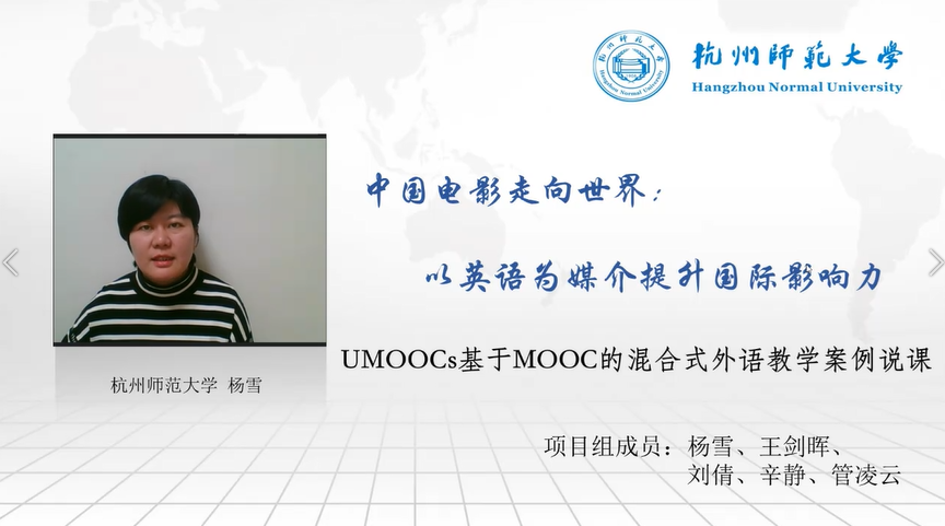 为推动高校信息化教学改革,促进基于慕课的混合式教学实践,孵化一批优质线上线下混合式课程,创新教学模式和教学方法、提高教学质量,中国高校外语慕课联盟开展了“第二届UMOOCs基于慕课的混合式教学优秀案例评选”。本次案例评选将分为“网络突围赛”和“现场总决选”两个阶段。由杨雪老师主持,王剑晖老师主讲,管凌云、刘倩、辛静等老师共同参与的教学案例《中国电影走向世界:以英语为媒介提升国际影响力》进入20强,获得全国二等奖。