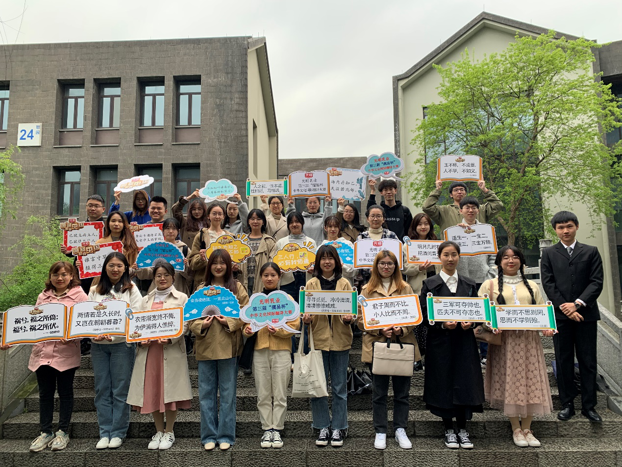 在开场宣讲环节,大赛组委会秘书处负责人陈玲老师详细介绍了本次大赛的情况、参与方式以及各类奖项设置和注意事项等,还与同学们一起回顾了前两届大赛的精彩瞬间。大赛协办方代表翻译系负责人朱越峰老师回顾了前两届参赛及获奖情况,并对本次大赛提出了“勇上新台阶”的期待。在活动代表合影留念后,接下来的是互动环节。同学们用中英双语完成现场短视频拍摄与大赛问答栏目,在展现中华古诗词音、形、意美的同时,也展现了我校学子“腹有诗书气自华”的精神气质。