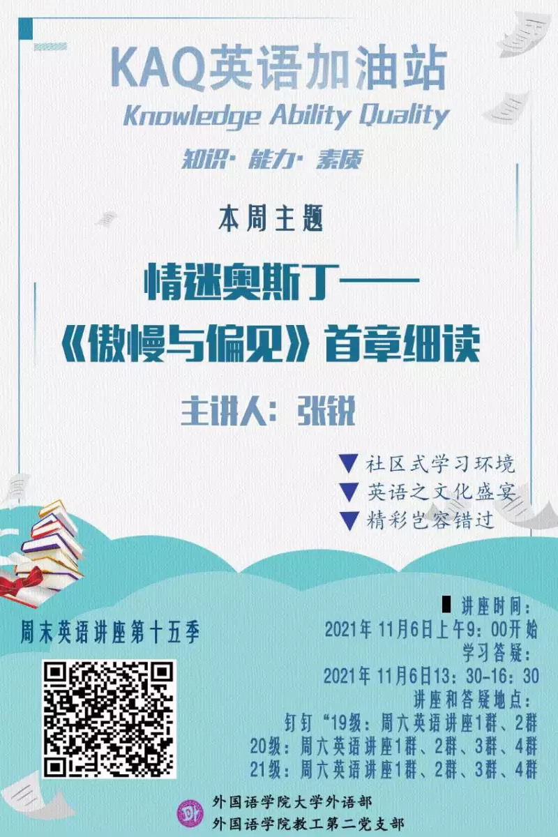 - 周末英语公益讲座:“情迷奥斯丁——《傲慢与