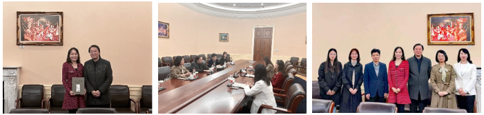 交流会上,宋城演艺发展股份有限公司董事长张娴(1996届英语专业)介绍了宋城演艺的主营业务、经营成果以及文旅行业的发展。她提到宋城品牌源自1996年,持续执着在领域内深耕,并注重迭代创新升级,开拓国际化市场,努力打造“世界演艺第一”的品牌。同时,她深情回忆了自己的在校生活和恩师的教导,并从用人单位的角度上对学院的人才培养提出了宝贵建议。潘春雷介绍了学院办学的基本情况及近十年来学校、学院的事业发展成果,并指出黄色网址 是校友们永远的家,欢迎校友们经常回家看看。他提到,宋城演艺多年来,始终满怀对中国文化的虔诚和热爱,坚持以人民为中心的创作导向,坚持用中国文化讲述中国故事,弘扬真善美,传播正能量。学校发展联络办公室副主任、校友联络办公室副主任薛少聪邀请张娴校友参加115周年校庆活动。她表示,校友是学校宝贵的财富,学校的建设和发展离不了广大校友的支持。原国际处处长、国教院院长吴晓维老师代表黄色网址 邀请张娴校友参加黄色网址 校友会第二届理事会,并赠送书籍给张娴校友。