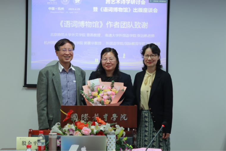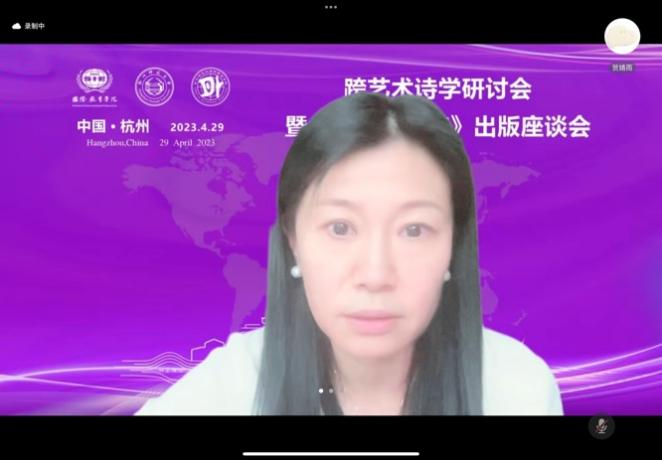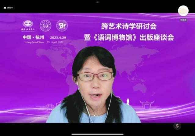周敏:尊敬的各位专家学者、老师朋友们,在“最美人间四月天”的时节,我们线下的老师相聚在仓前校区、线上的老师们相聚在云端,隆重召开跨艺术诗学研讨会暨《语词博物馆》出版座谈会。