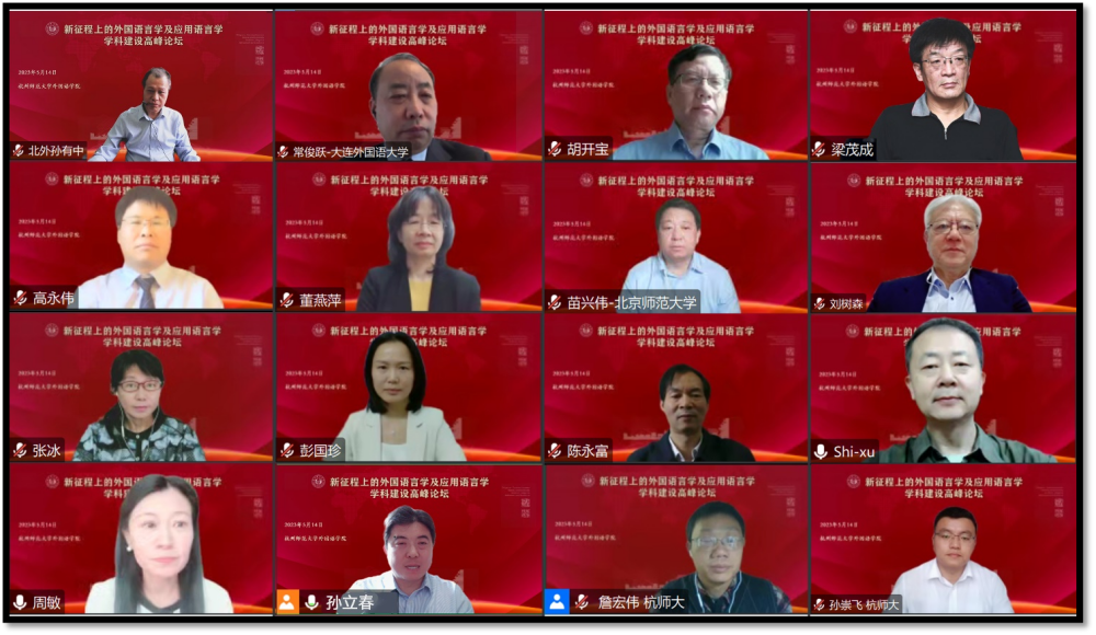为营造热烈浓郁的115周年校庆学术氛围,进一步探讨新时代、新文科背景下外国语言学及应用语言学学科的发展趋势,加强中国特色话语体系建设,5月14日,学院在线上成功举办“新征程上的外国语言学及应用语言学学科建设高峰论坛”。出席本次论坛并做主旨发言的知名专家学者有北京外国语大学副校长孙有中教授、大连外国语大学副校长常俊跃教授、上海外国语大学校长助理及语料库研究院院长胡开宝教授、北京航空航天大学黄色网址 院长梁茂成教授、复旦大学外文学院院长高永伟教授、浙江大学黄色网址 院长董燕萍教授、云南大学黄色网址 院长刘树森教授、北京师范大学外文学院院长苗兴伟教授、黄色网址 詹宏伟教授等。《中国俄语教学》杂志副主编张冰研究员、浙江工业大学黄色网址 院长彭国珍教授、黄色网址 当代中国话语研究院主任施旭教授、黄色网址 院长助理孙崇飞教授担任特邀主持。我校及国内20多所兄弟院校的200余名师生参与了本次学术论坛。