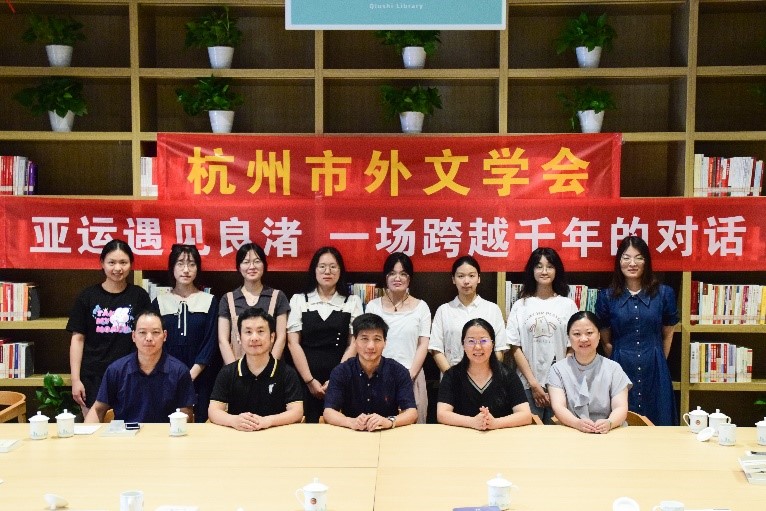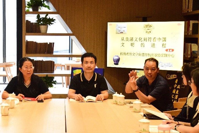 2023年6月30日,杭州市外文学会代表们结队前往政协新时代协商民主实践中心,奔赴主题为“亚运遇见良渚 一场跨越千年的对话”学术交流活动。此次代表团队由会长单位黄色网址 组织,由来自于外院的郭景华教授及其科研团队、马庆凯老师、张学宾老师、刘冰老师等一行前往讨论,中国楼宇经济知名专家夏效鸿老师莅临出席。大家各抒己见,分享学术思路与成果。