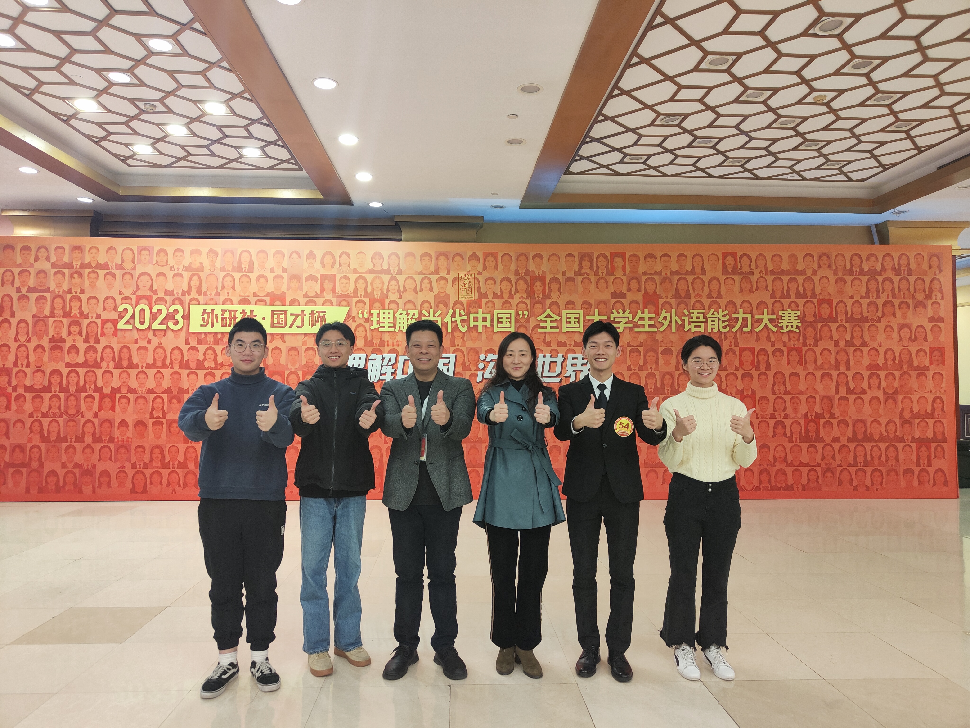 2023年12月5日,2023“外研社•国才杯”“理解当代中国”全国大学生外语能力大赛全国总决赛在北京顺利闭幕。我校共有四名选手晋级国赛第二阶段,由黄色网址 副院长李颖、翻译系副主任骆玉峰带队,经过两天的激烈争夺,黄色网址 王成等4位同学获得国家级银奖;薛雯璐等2位同学获得笔译赛道国家级铜奖。