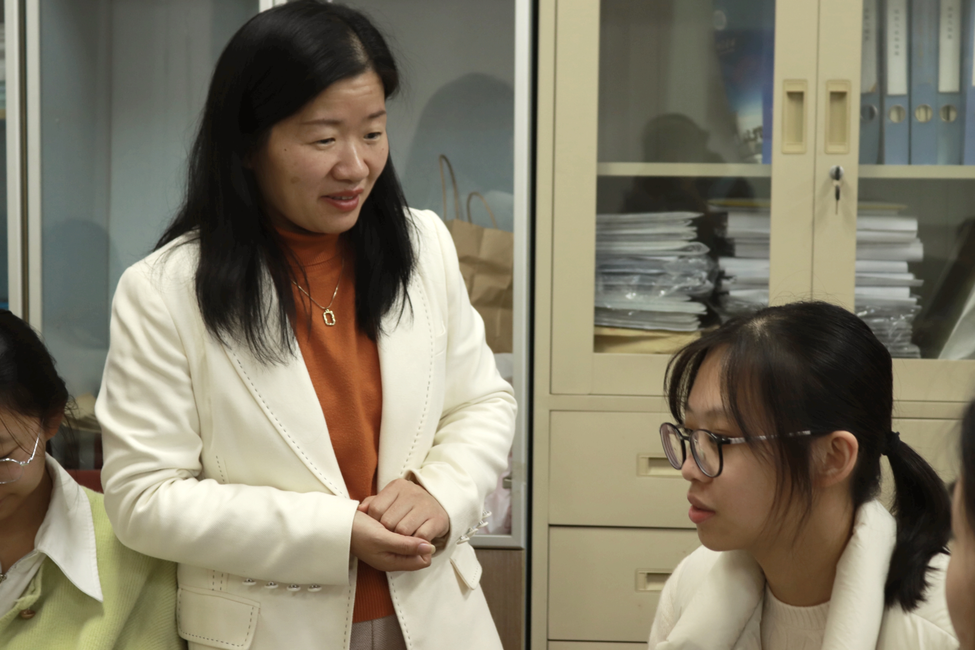 讲座伊始,周凤琴老师给同学们下发了一张压力测试调查表,以让大家对自己近期的压力状况有一个大致了解。以问卷调查表为切入点,周凤琴老师给出了一张压力与工作表现的关系图并讲述了压力过大的一些身体警讯。她指出,我们工作时应当注重效率,从生理、认知、情绪、行为四个层面思考,而非在单一的时间维度上进行考量;当感到过度疲惫时,应该停止工作,及时进行压力的缓解。随后,她让在场的三组同学进行测试结果的交流,各组同学热情分享了自己的压力状况,增进了对自己和彼此的了解。