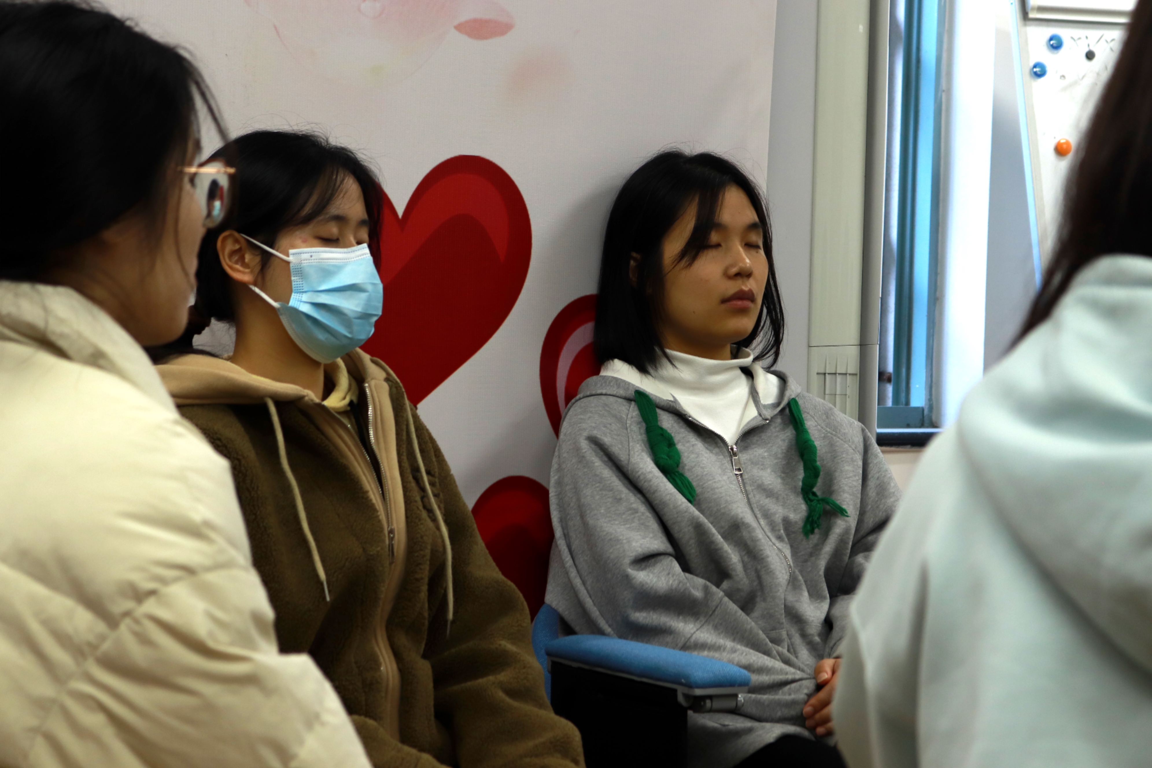 随后,她强调正念的核心技术是正念冥想,即把心引导到此时此地。她通过情景带入的方式,让在场同学们进行了一次身体扫描练习,从脚尖到头部,努力去感受自己的身体。通过练习交流,同学们留意到身体的不同反应,感到放松和平静,有了前所未有的体验。