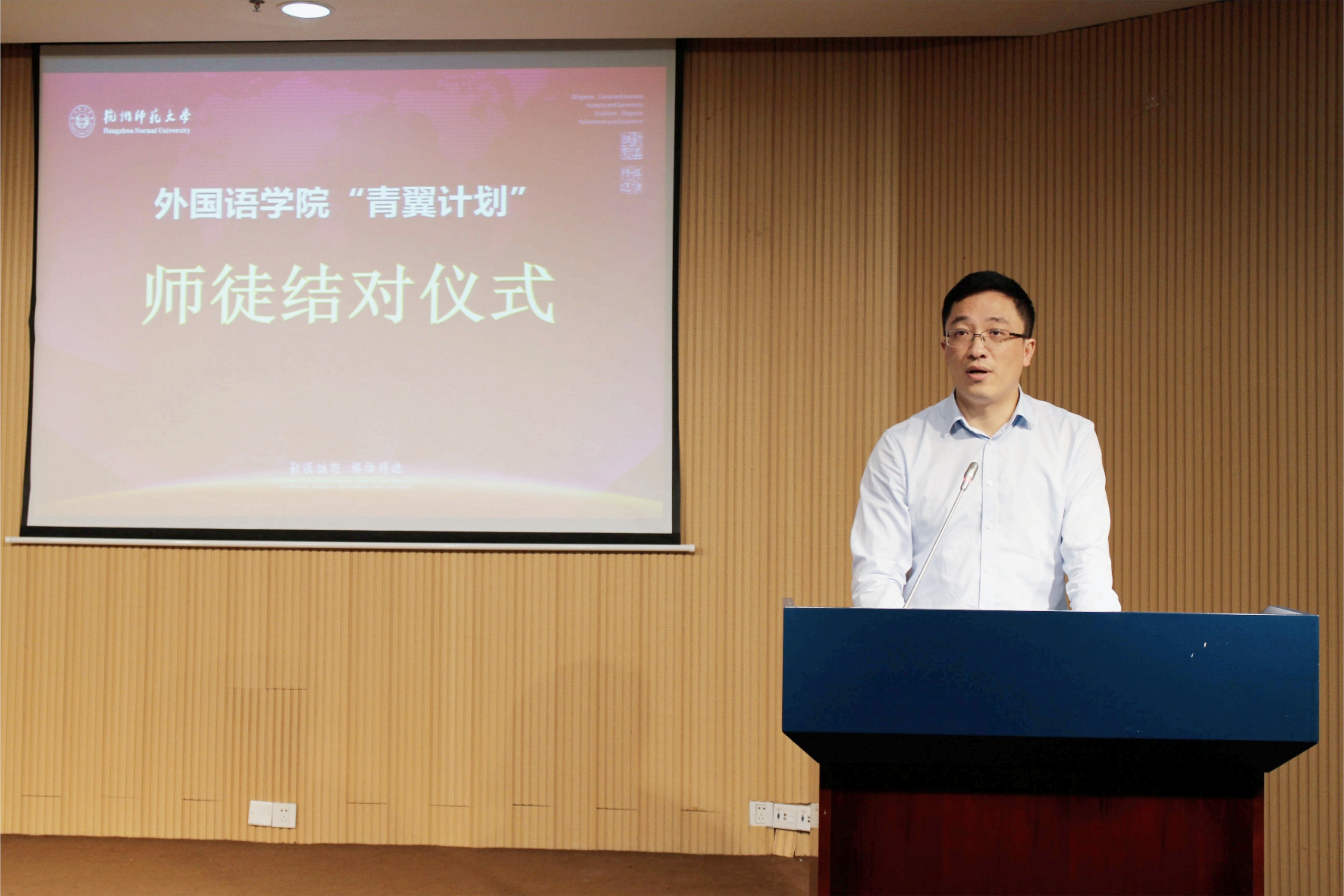 院学术委员会主任殷企平教授作为导师代表在发言中勉励青年教师志存高远,把个人发展目标与学院学科发展目标相融合,立志为学院事业发展多作贡献;学会与一流学者交朋友,积极参加各类学术会议、学术讲座,多向全国乃至世界一流学者主动联系、学习交流学术心得;学会带着脚铐跳舞,平衡好事业发展与家庭生活的关系,只争朝夕务实进取。