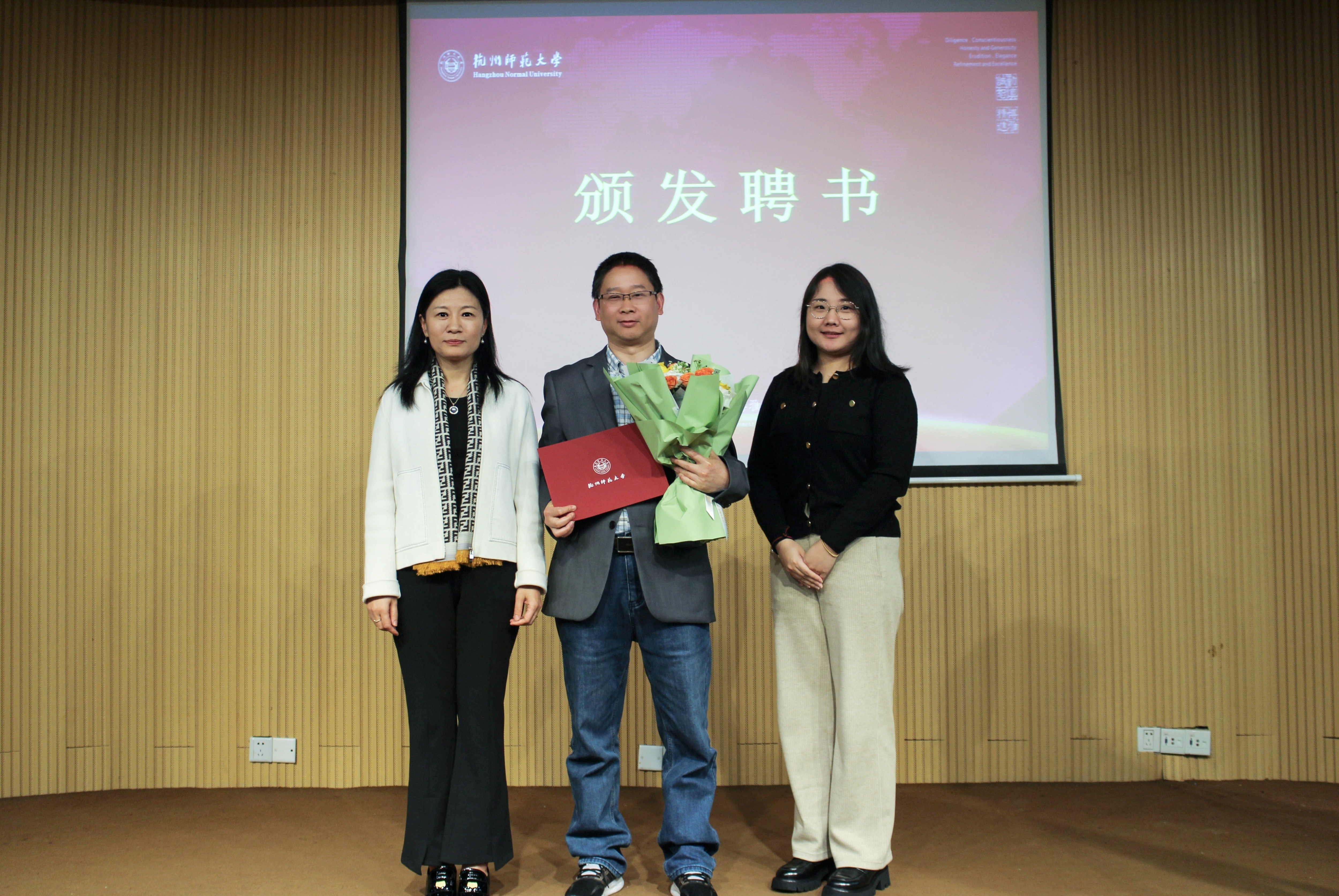 结对仪式上,院长周敏为结对导师颁发聘书,青年教师向结对导师献花致谢。