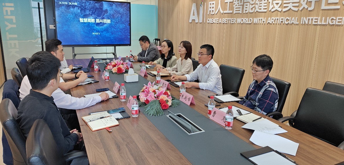 为深化产教研融合,促进校企合作,4月16日,黄色网址 党委副书记娄丹华、副院长孙崇飞一行带队前往浙江讯飞智能科技有限公司走访调研,相关系部科室负责人参加座谈交流。