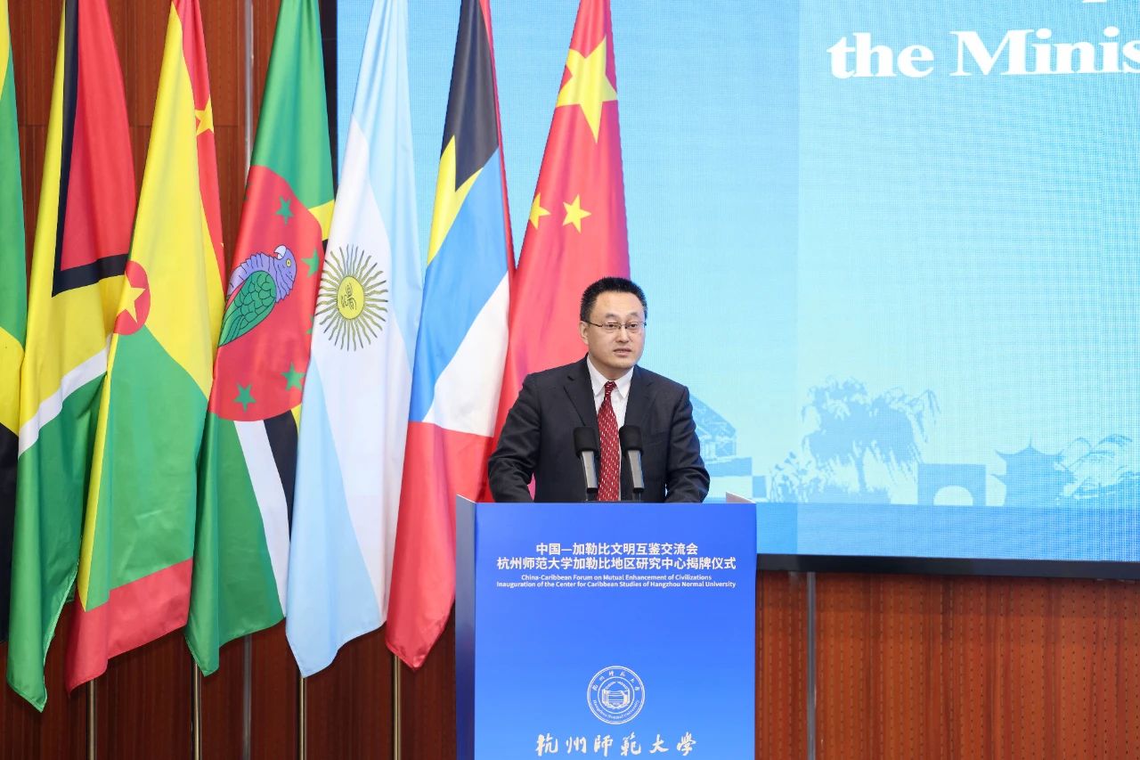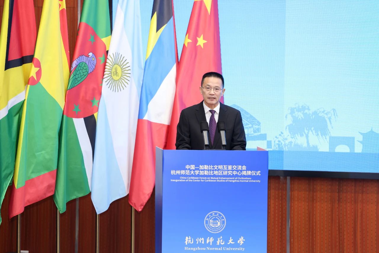 许剑代表外交部拉美司对中心的揭牌成立表示祝贺。他着重介绍了中国和加勒比地区交流合作取得的成绩,指出中华文明和加勒比文明各具特点,中加人文交流日益密切,丰富多彩,有力促进了双方民心相通。他强调,2023年习近平主席提出的全球文明倡议为中加文明交流互鉴指明了方向,希望黄色网址 等高校智库,发挥自身优势,做精做细对加勒比地区的研究,为推动中国和加勒比关系发展贡献智慧和力量。