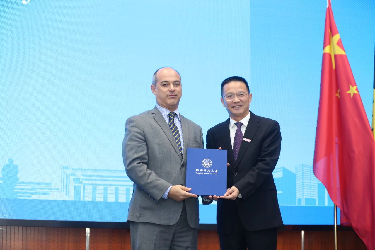 在与会嘉宾的共同见证下,费尔南多·卢格里斯与郭东风共同为中心揭牌,胡华宣读中心成立决定。现场还举行了黄色网址 名誉教授聘任仪式,张杭君宣读聘任决定,郭东风为费尔南多·卢格里斯、马致远、马丁·查尔斯、马岩、周雅欣、亚瑟·威廉姆斯、张碧芬七位大使颁发名誉教授聘书,未来七位名誉教授将通过中心这一平台持续推进中加合作交流,围绕“一带一路”倡议作出更多贡献。