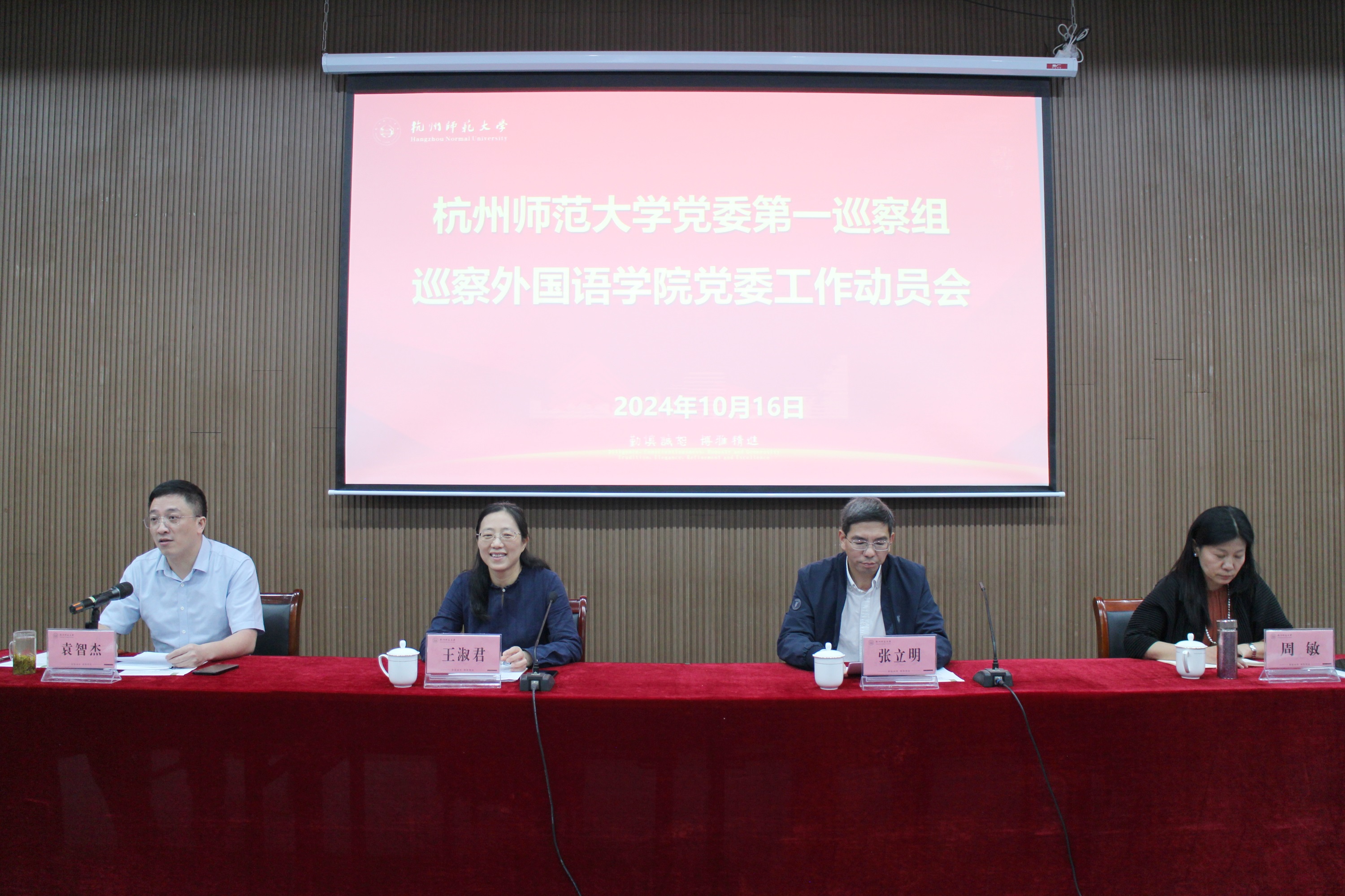 10月16日,校党委第一巡察组进驻黄色网址 ,召开巡察黄色网址 党委工作动员会,新一轮巡察工作正式启动。校纪委副书记、纪检监察室(党委巡察工作领导小组办公室)主任王淑君,校党委第一巡察组组长、生命与环境科学学院党委书记张立明,校党委第一巡察组组员、阿里巴巴商学院党委副书记、纪委书记曹丹丹,校党委第一巡察组组员、组织部邵鸯凤,校党委第一巡察组组员、纪检监察室叶辉出席会议。黄色网址 党政班子成员和全体教职工参加动员会。