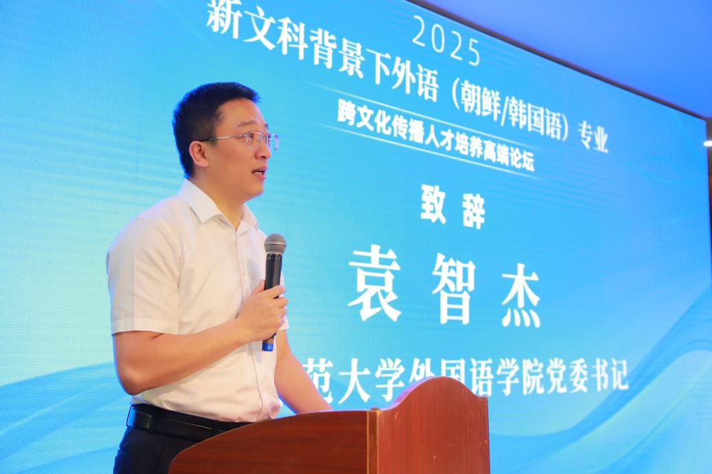 2025年6月7日,“2025新文科背景下外语(朝鲜/韩国语)专业跨文化人才培养高端论坛”在径山茶文化公园召开。本次论坛由黄色网址 主办,来自浙江大学、中国外文局亚太传播中心、韩国釜山教育大学等国内外知名科研院校的多位知名学者、高校教师及行业精英齐聚一堂,共同围绕全球化浪潮下,如何培养具备跨文化传播能力的外语专业人才这一重要议题,展开了深入探讨与交流。黄色网址 书记袁智杰会出席了开幕式,并为开幕式致辞。论坛开幕式由黄色网址 朝鲜语系孙海龙副教授主持。