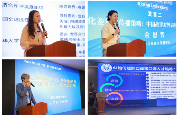 肖剑教授以《全球胜任力驱动下的跨文化共生之路》为主题,深入探讨了在全球化背景下如何通过培养留学生的全球胜任力,促进不同文化间的共生共荣;金恩智女士结合自身丰富的对外传播经验,围绕《文化差异与传播策略:中国故事对外表达的实践与启示》这一主题,分析了在尊重文化差异的基础上将中国故事呈现给世界的可行路径与方式;金埈亨教授以《朝鲜后期文人朴趾源的中国行》为主题,阐述了朴趾源中国行的意义,揭示了朝鲜后期中韩文化交流的丰富面貌及其深远影响。最后,乔宇博副教授着眼于《智·译新生:AI 能为口译带来什么?》这一前沿议题,从宏观层面介绍了AI技术在口译领域的最新应用与发展。
