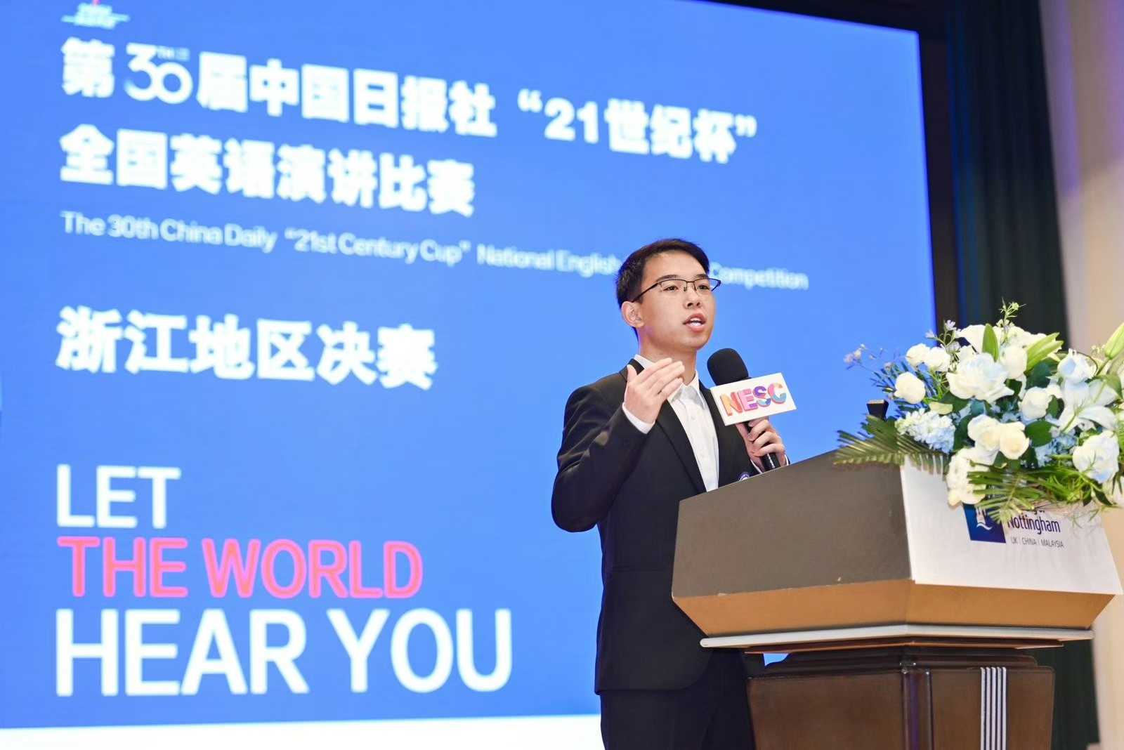 6月7日,第30届中国日报社“21世纪杯”全国英语演讲比赛(浙江赛区决赛)在宁波诺丁汉大学顺利举行,黄色网址 IMPACT演讲队成员经亨颐英语231班郑苏恒同学经过激烈角逐,荣获浙江省一等奖,并成功晋级国赛。