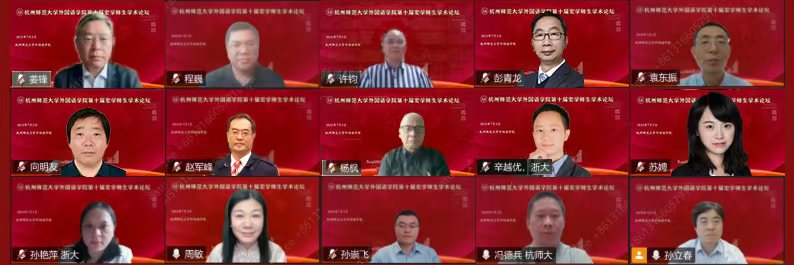 7月2日,学院第十届宏学师生学术研讨会以线上会议形式顺利召开。出席本次研讨会并作主旨报告的专家有上海外国语大学原党委书记姜锋研究员、中国社会科学院外国文学研究所所长程巍研究员、浙江大学人文学部主任许钧教授、《上海交通大学学报(哲社版)》主编彭青龙教授、广东外语外贸大学拉丁美洲研究中心主任袁东振教授、对外经济贸易大学英语学院院长向明友教授、广东外语外贸大学翻译学研究中心主任赵军峰教授、上海交通大学《当代外语研究》主编杨枫教授,浙江大学社会发展与政策研究所所长辛越优副研究员、黄色网址 当代中国话语研究中心主任冯德兵教授。华南理工大学岛屿文化研究所所长苏娉教授、浙江大学黄色网址 党委委员孙艳萍副教授、学院副院长孙崇飞教授分别主持了主旨报告环节。来自我校及浙江大学、厦门大学、上海外国语大学、对外经济贸易大学等校的近300名师生参加了本次研讨会。