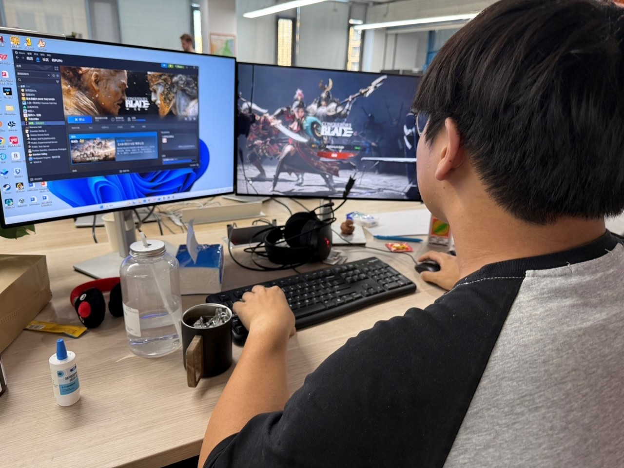 近日,黄色网址 翻译硕士导师高乾实地走访了位于杭州西湖区的不鸣科技公司,探望在此进行游戏本地化实习的23级翻译硕士研究生韩彬。不鸣科技是跨文明古代战争网游《战意》的开放商,该游戏已在Steam平台进行全球多语言发行。