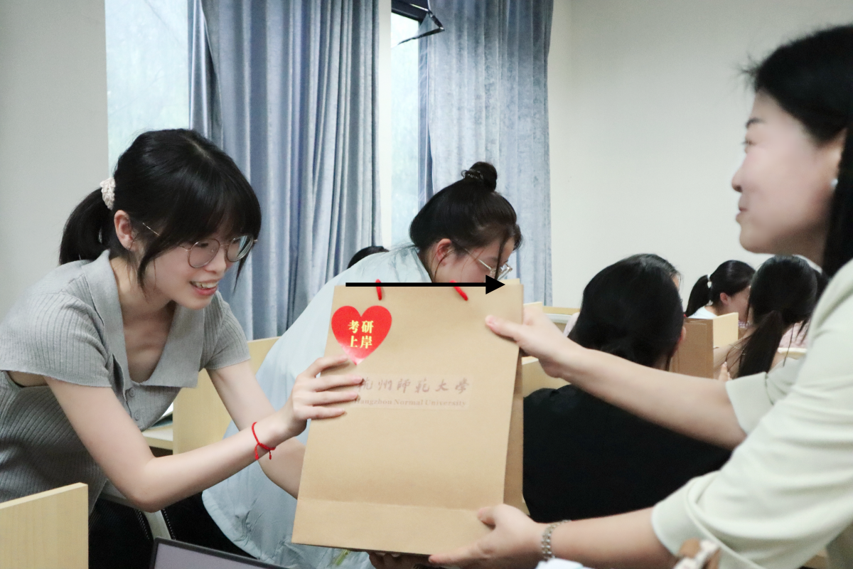 随后,周敏院长和袁智杰书记为同学们送上精心准备的“考研加油包”,将学院的深切关怀与殷切期望传递到每一位学子心中,让暑期的自习教室充满了温情与力量。同学们纷纷表示,学院领导的慰问让大家倍感温暖、备受鼓舞,不仅增强了备考的动力,更让大家感受到了“外院大家庭”的凝聚力。