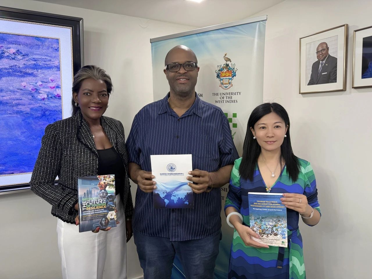 2025年8月12日下午,应牙买加旅游部长埃德蒙·巴特利特(Edmund Bartlett)阁下邀请,黄色网址 院长、加勒比地区研究中心主任周敏教授访问了全球旅游业韧性与危机管理中心(Global Tourism Resilience and Crisis Management Centre, GTRCMC)。中心主任劳埃德·沃勒(Lloyd Waller)教授亲切接待并详细介绍了中心的发展历程与运作模式。