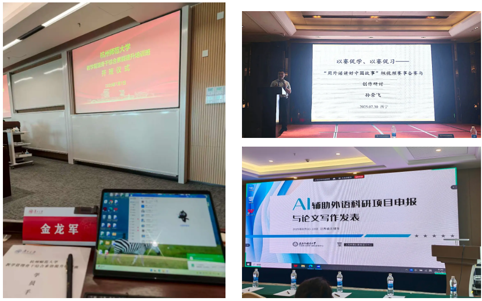 为紧跟智能教育浪潮,学院教师们主动利用假期,赴上海、西宁、无锡、北京、芜湖等地参加AI教学培训,积极求索新知识、新技能,决心以自我提升赋能未来教学。其中,段凯莉和宋泽华两位老师参加了外教社主办的“AI 辅助外语科研项目申报和论文写作发表”培训,在专家讲座与专题工作坊中,从理论到实践收获颇丰;金龙军老师则参与了复旦大学教学管理骨干综合素能提升培训班,围绕人工智能赋能等方向展开学习与研讨;辛静老师参加了由北京师范大学与联合国教科文组织教育信息技术研究所联合主办的“2025全球智慧教育大会”,在大会期间深入学习了智慧教育前沿成果与实践经验,并与来自世界各地的专家学者进行了交流与研讨。