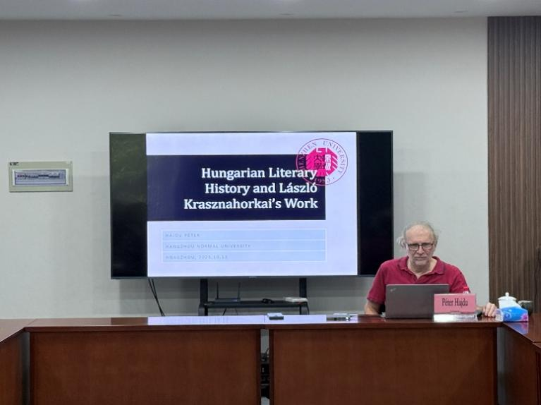 10月13日下午,匈牙利权威学者Péter Hajdu教授应邀为黄色网址 师生作了题为Hungarian Literary History and László Krasznahorkai’s Work的专题讲座,吸引了来自本校及上海外国语大学、浙江大学等高校的师生参与。本次讲座由黄色网址 院长周敏教授主持。