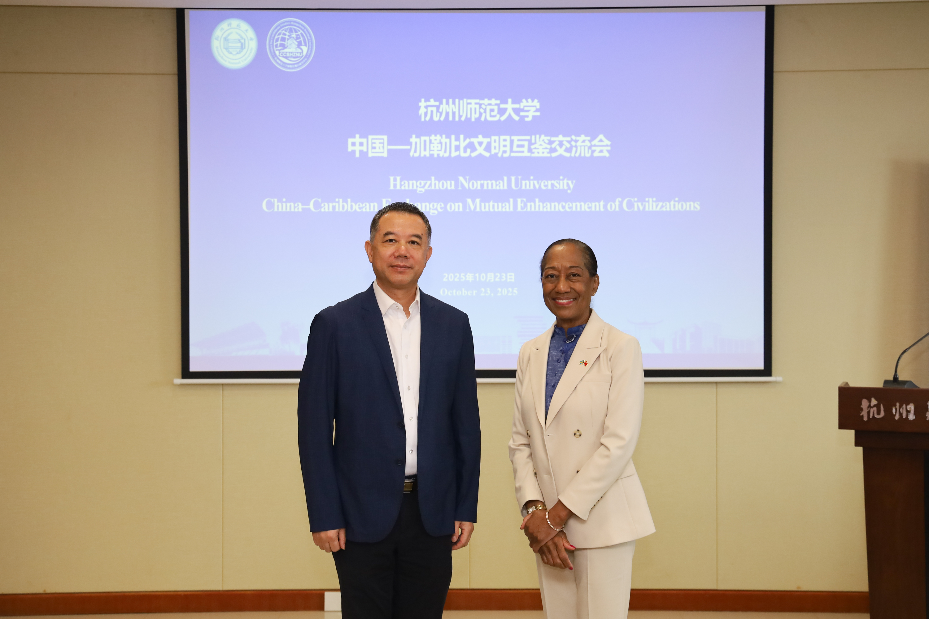 2025年10月23日上午,“中国—加勒比文明互鉴交流会”在我校仓前校区举行。本次活动包括《侧身奔跑》中文译著新书发布与“中拉论坛精神下的交流”两大议程,旨在推动中国与加勒比地区在文化、教育、体育等领域的深度对话与合作。