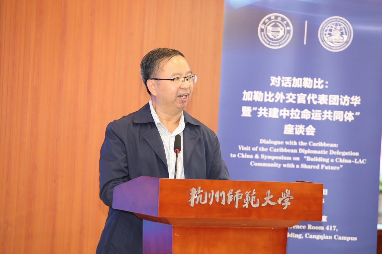 胥琨参赞在致辞中指出,中拉虽地理距离遥远,但双方在经贸、教育、科技等多领域的务实合作成果丰硕,已成为推动中拉关系持续向前发展的强劲动力。他特别强调,习近平主席在中拉论坛第四届部长级会议提出的“五大工程”——团结、发展、文明、和平和民心,正为中拉关系注入新动能,推动双方合作迈向更广领域、更深层次。杭师大加勒比地区研究中心作为重要交流平台,有效促进了双方在学术、文化等领域的深度沟通,为中拉友好往来奠定了坚实基础。