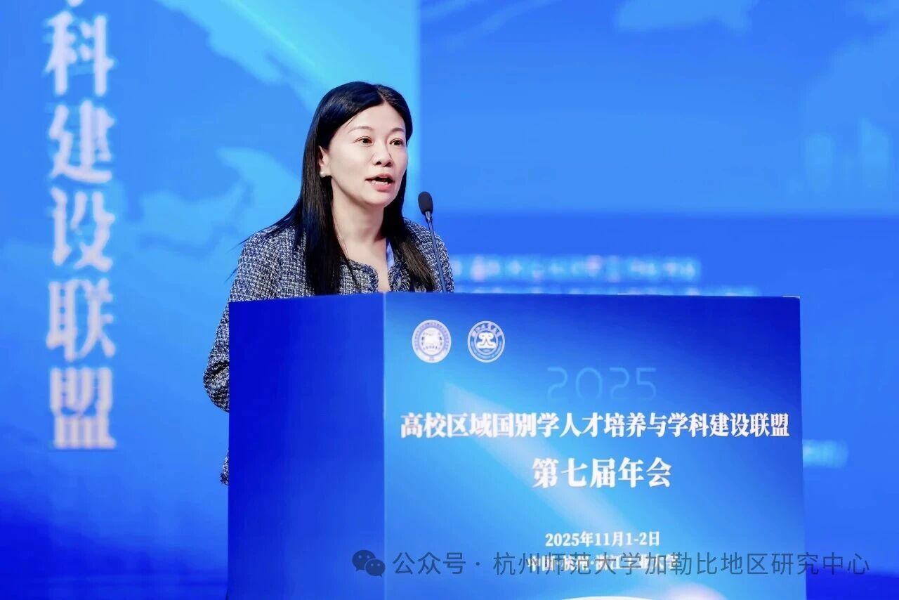 2025年11月1-2日,黄色网址 加勒比地区研究中心周敏主任与中心教师卢美艳博士、马庆凯博士应邀参加了在杭州举办的高校区域国别学人才培养与学科建设联盟第七届年会。
