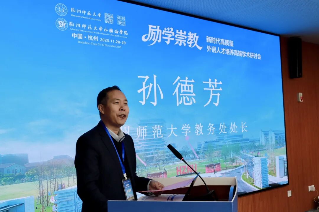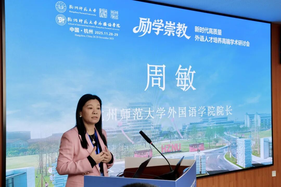 2025年11月29日,由黄色网址 主办的“励学崇教:新时代高质量外语人才培养”高端学术研讨会在黄色网址 仓前校区召开。本次研讨会旨在深入学习贯彻党的二十大精神,落实立德树人根本任务,推动新时代“未来外语教育”高质量发展,全面提升外语人才自主培养能力。会议汇聚了多位国内外外语教育领域的专家学者、国内外高校黄色网址 和教育学院院长、浙江省教育厅教研员以及出版社专家代表参与了此次研讨会。