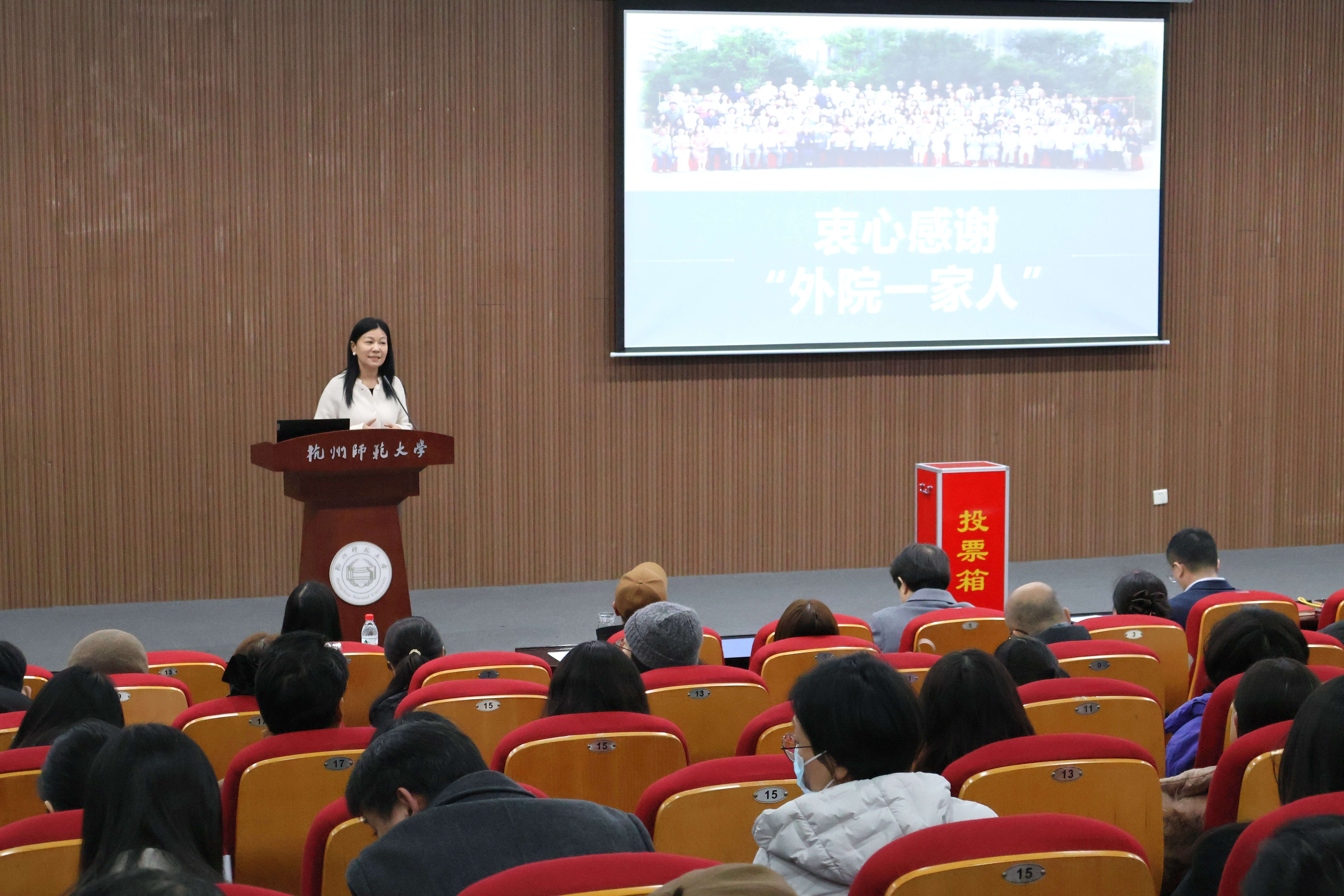 周敏院长全面总结了过去一年学院各项工作开展情况。她指出,在全院师生的共同努力下,2025年学院强基固本、持续打造学科建设新高地;引育并举,持续提升人才队伍影响力;提质增效,持续推动教育教学新发展;立德树人,全面构建育人工作新格局;服务社会,有力彰显外语学科新作为;党建引领,奋力开创学院治理新局面;在平台建设、教学成果、育人工作等方面开拓创新,实现了跨越式发展和历史性突破。她强调,新的一年是“十五五”发展规划开局之年,希望全院教师围绕中心工作,进一步凝聚向心力、画好“同心圆”,将个人发展熔铸于学院发展蓝图之中,凝心聚力推动学院事业高质量发展;聚焦国家战略,明晰个人发展目标,不断提升跨界研究能力,齐力锻造高水平师资队伍,为实现学院事业可持续发展注入强劲动能。